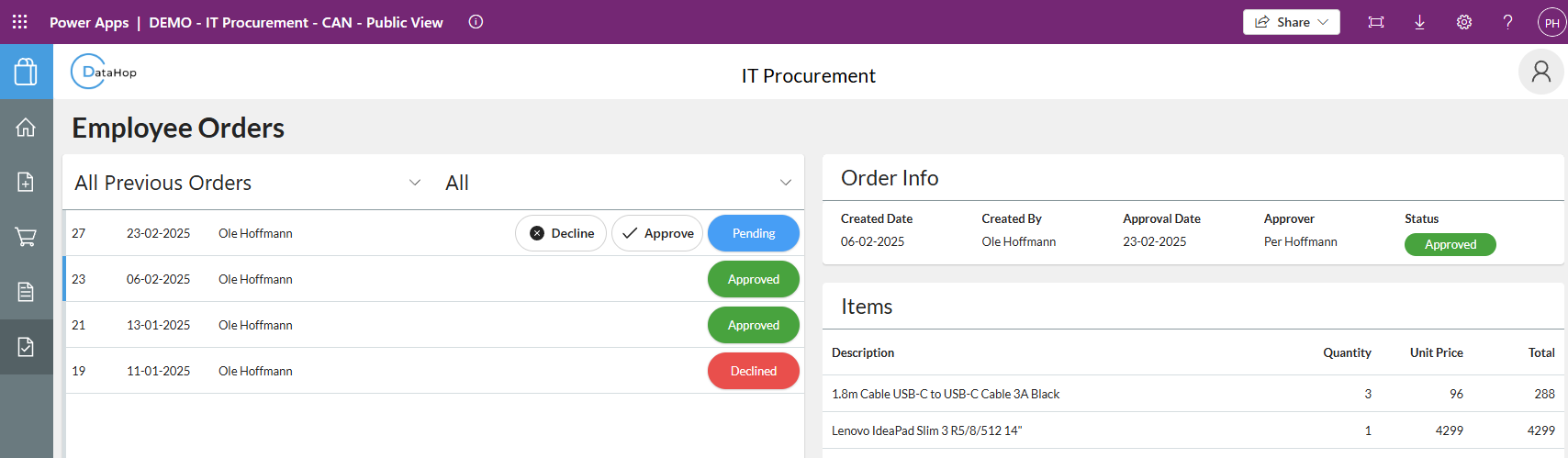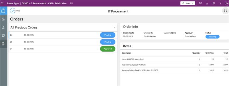 Med vores IT Procurement App, bygget i Microsoft Power Apps, får du en smart, integreret løsning, der effektiviserer hele processen. Hvis din virksomhed allerede har en Microsoft-licens, har du sandsynligvis adgang til Power Apps – uden ekstra omkostninger.